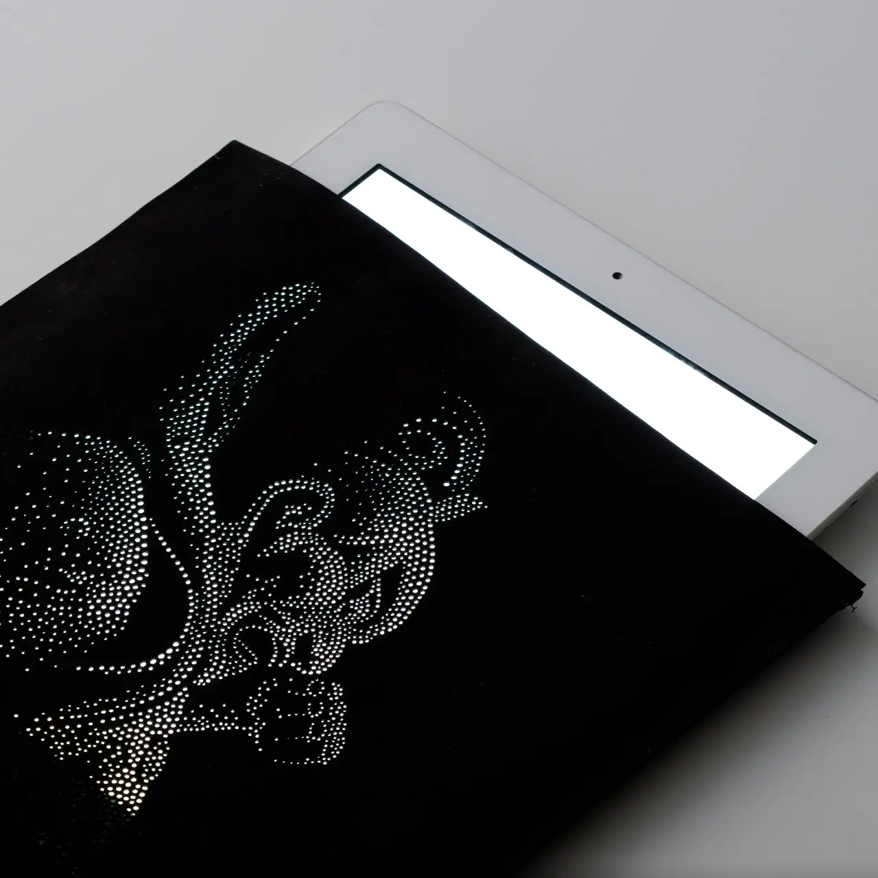 Paper patterns are engraved upon to enhance traditional Japanese clothing and accessories. Depending on the dyeing method and purpose of use, it is necessary to engrave up to several hundred stencils for items such as formal and semi-formal kimono, long-sleeved kimono and other small articles.
