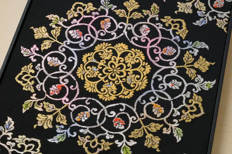 The art textiles they produce are the “crystallization of Japanese aesthetic sense and sense of beauty,” which is the culmination of Nishijin textile techniques. The company is committed to the daily improvement of the techniques as they produce them, to transform them into works of art suitable for modern times, with the intent of passing them on to the next generation.