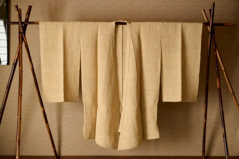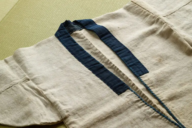 The primitive cloth, Fujifu, composed of wisteria fibers, is said to be the oldest known fabric in Japan, dating from the prehistoric Jomon period. Myths related to Fujifu appear in the Kōjiki (Records of Ancient Matters) and in the Manyōshu (an 8th century Japanese poetry anthology), indicating the fabric’s importance and prevalence in clothing and everyday goods.