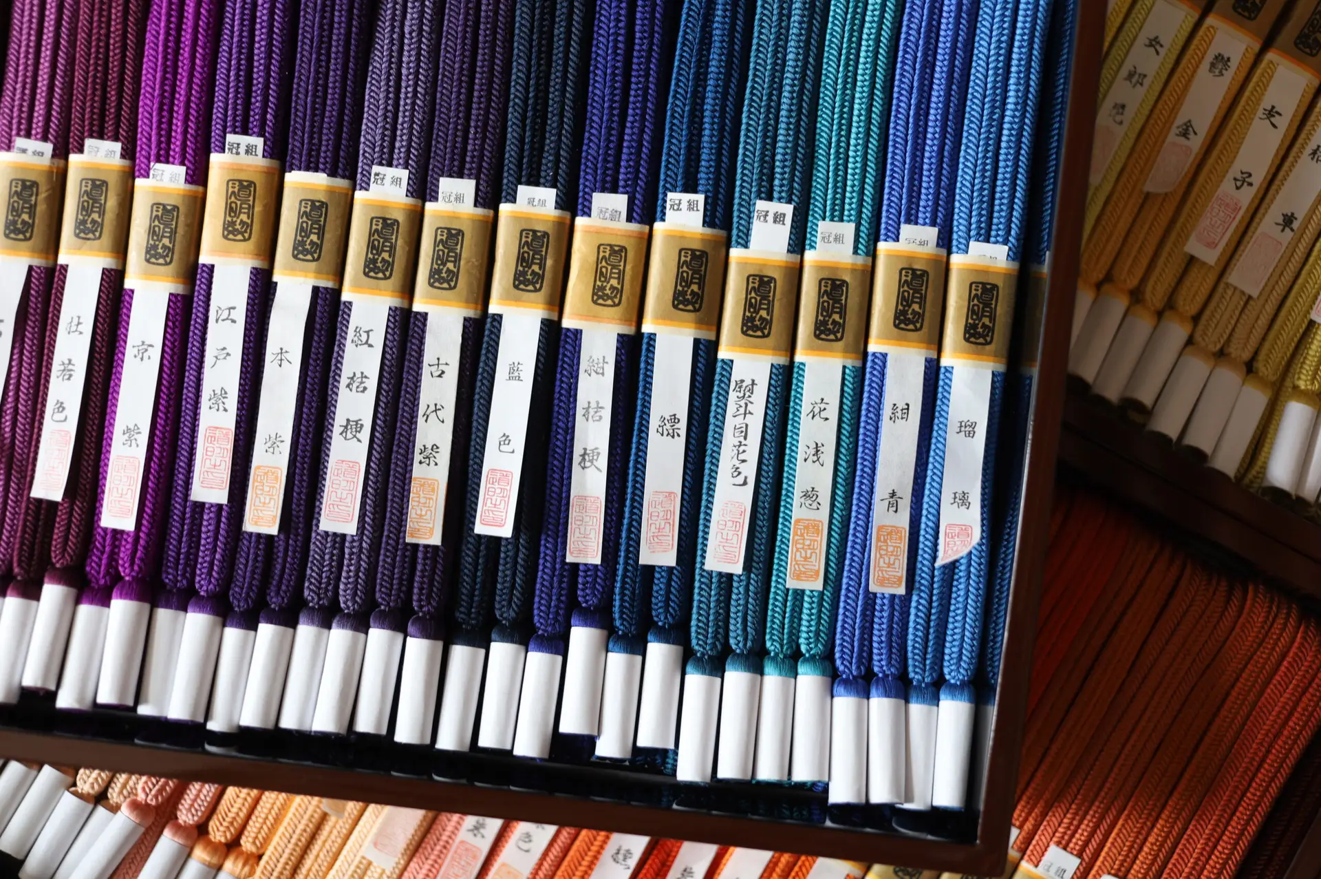 Established in 1652, Domyo was founded by a samurai retainer from the Echigo area who laid down his sword to open a business.  By the middle of the Edo period, the prospects for samurai were poor in comparison with the merchant class, and out of economic necessity, the production of kumihimo often became a side job for extra income, allowing their techniques to be to be passed on.